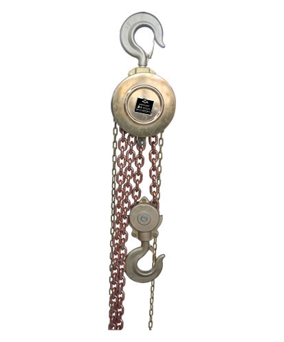 圓形防爆手拉葫蘆工作原理是:通過(guò)曳動(dòng)手拉鏈條,帶動(dòng)手鏈輪開始轉(zhuǎn)動(dòng),緊接著帶動(dòng)摩擦片棘輪、制動(dòng)器座(被壓成一體)共同旋轉(zhuǎn),這時(shí)五齒長(zhǎng)軸便轉(zhuǎn)動(dòng)片齒輪、四齒短軸和花鍵孔齒輪,從而,裝置在花鍵孔齒輪上的起重鏈輪就帶動(dòng)起重鏈條,平穩(wěn)地提升重物。